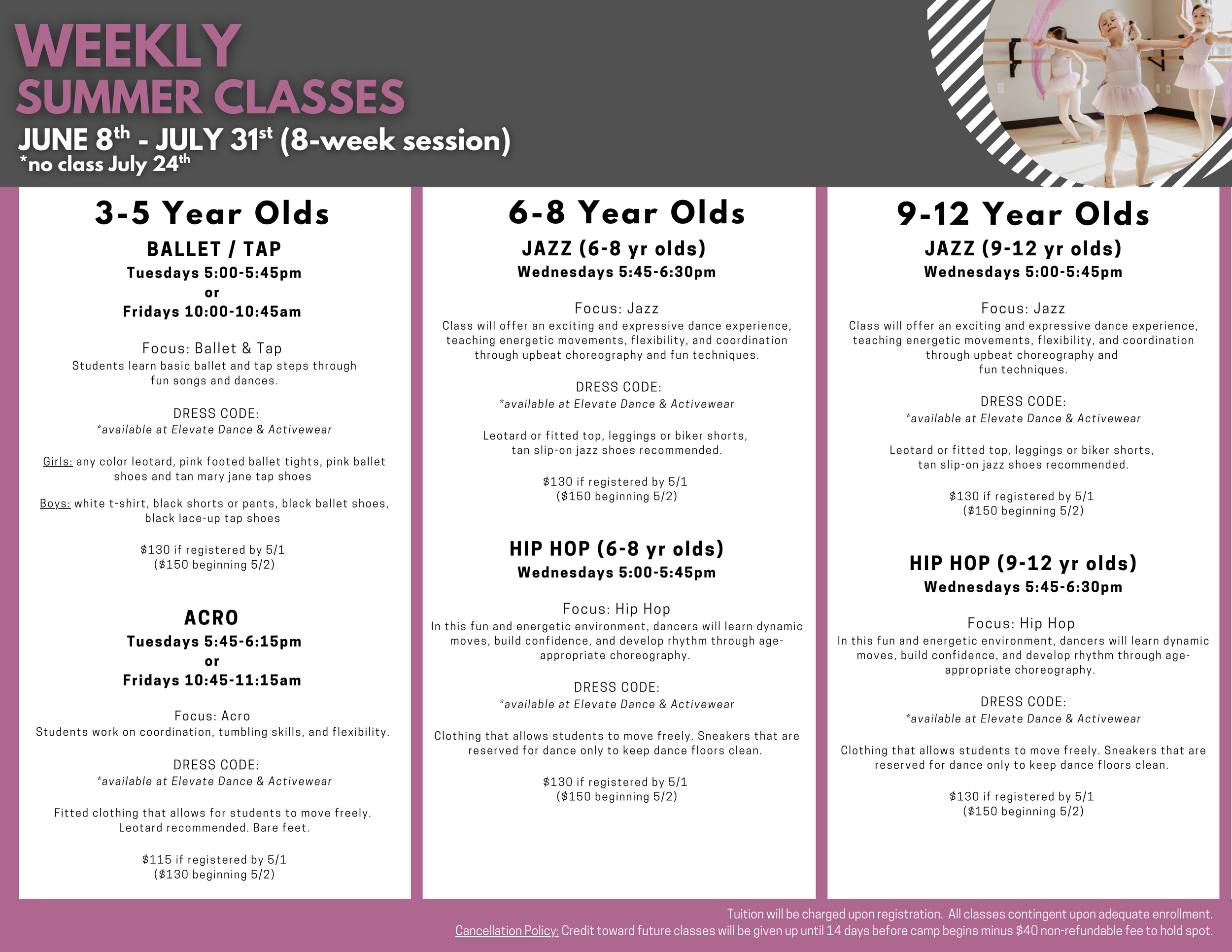Dancers should sign up for their PDC 2025-2026 current class level for summer. For example, if they are in level 4, they should sign up for the level 4 this summer. Classes continue to work on and refine elements of our curriculum in the summer. 2026-2027 class placements will be sent out after dancers do placements in May.
